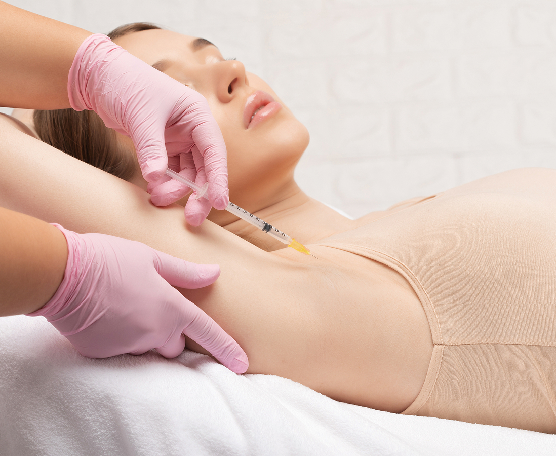 Il trattamento con botulino è il rimedio più semplice ed efficace contro la sudorazione eccessiva. Non è un intervento chirurgico e non richiede tempi di recupero. Con piccole iniezioni indolori il botulino viene trasferito nei punti delle ascelle dove si trovano le ghiandole sudoripare. Il risultato è che le ghiandole smettono di funzionare per molti mesi/un anno e il sudore si ferma.